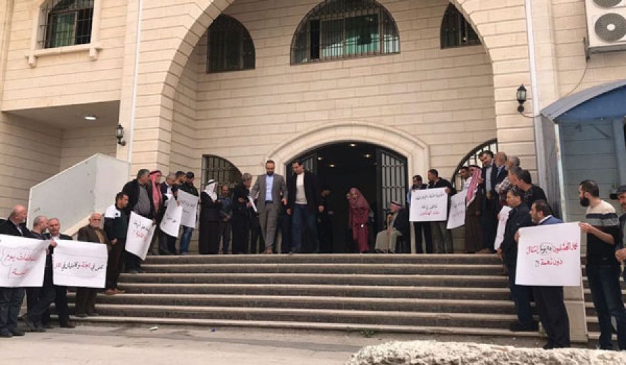 وقد حمل المحتجون يافطات استنكرت الاعتقال السياسي وموقف القضاء من اعتقال الهشلمون على ذمة اللجنة الأمنية، من مثل "هل أصبحت الدعوة إلى الخلافة جريمة"، و"الاعتقال على ذمة اللجنة الأمنية دوس على القانون"، و"الظلم ظلمات يوم القيامة"، و"تحويل محمد إلى أريحا - فوق الظلم - هو مخالف للقانون).