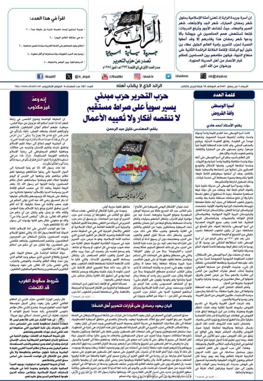 جريدة الراية العدد 587 الأربعاء 1 من رمضان 1447 هـ الموافق 18 شباط / فبرلير 2026 م