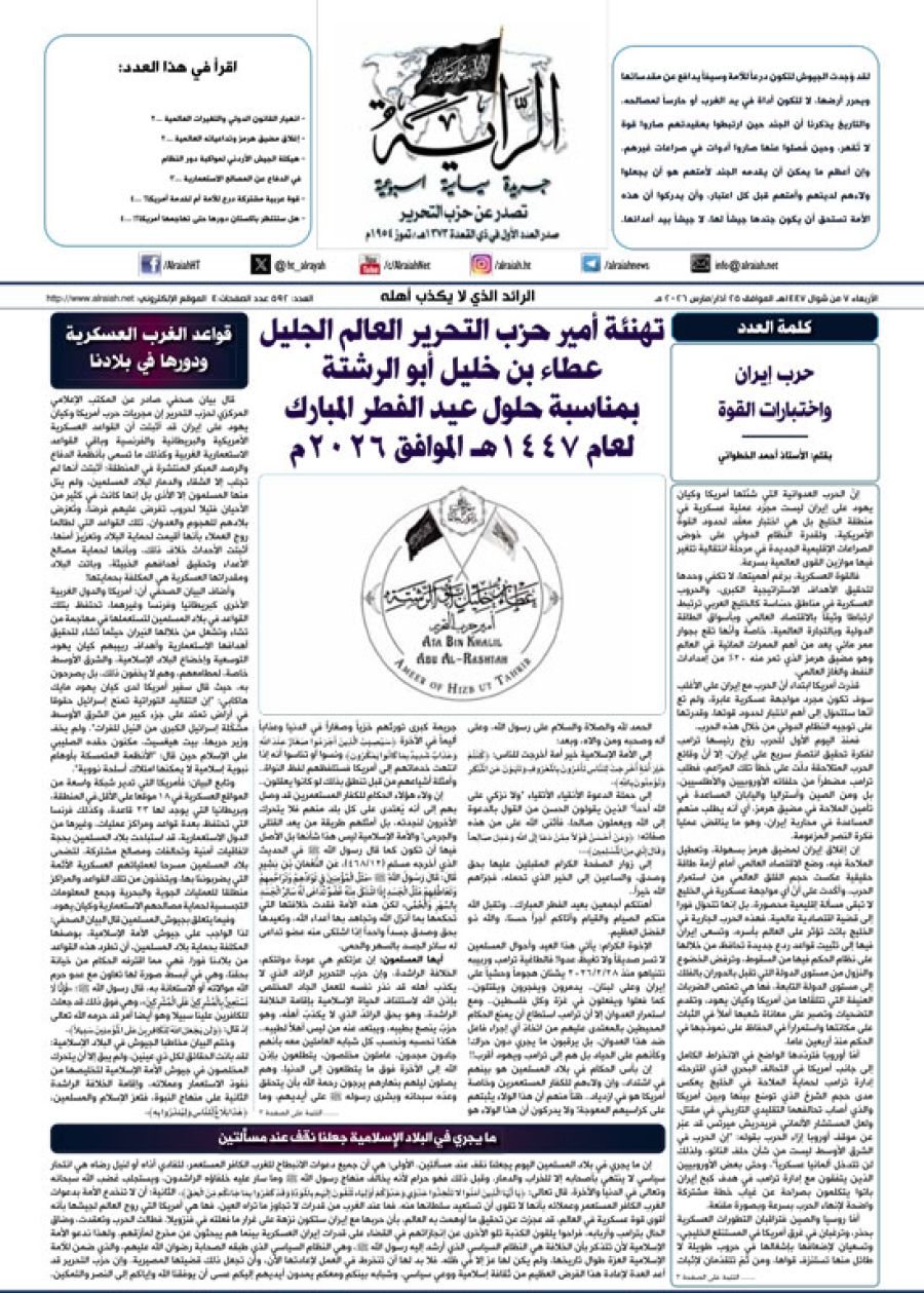 جريدة الراية العدد 592 الأربعاء 7 من شوال 1447 هـ الموافق 25 أذار / مارس 2026 م