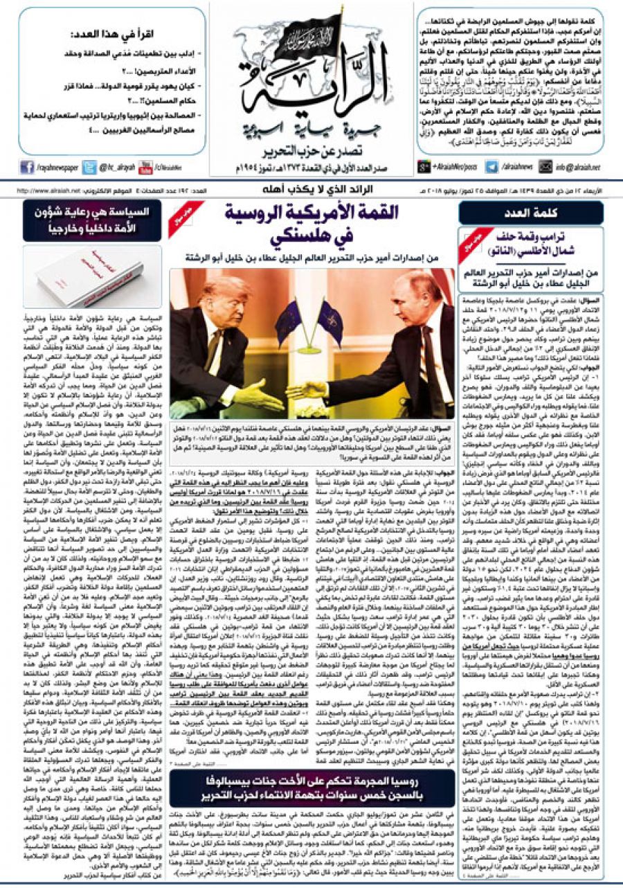 جريدة الراية العدد 192 الأربعاء 12 من ذي القعدة 1439 هـ/ الموافق 25 تموز / يوليو 2018 م