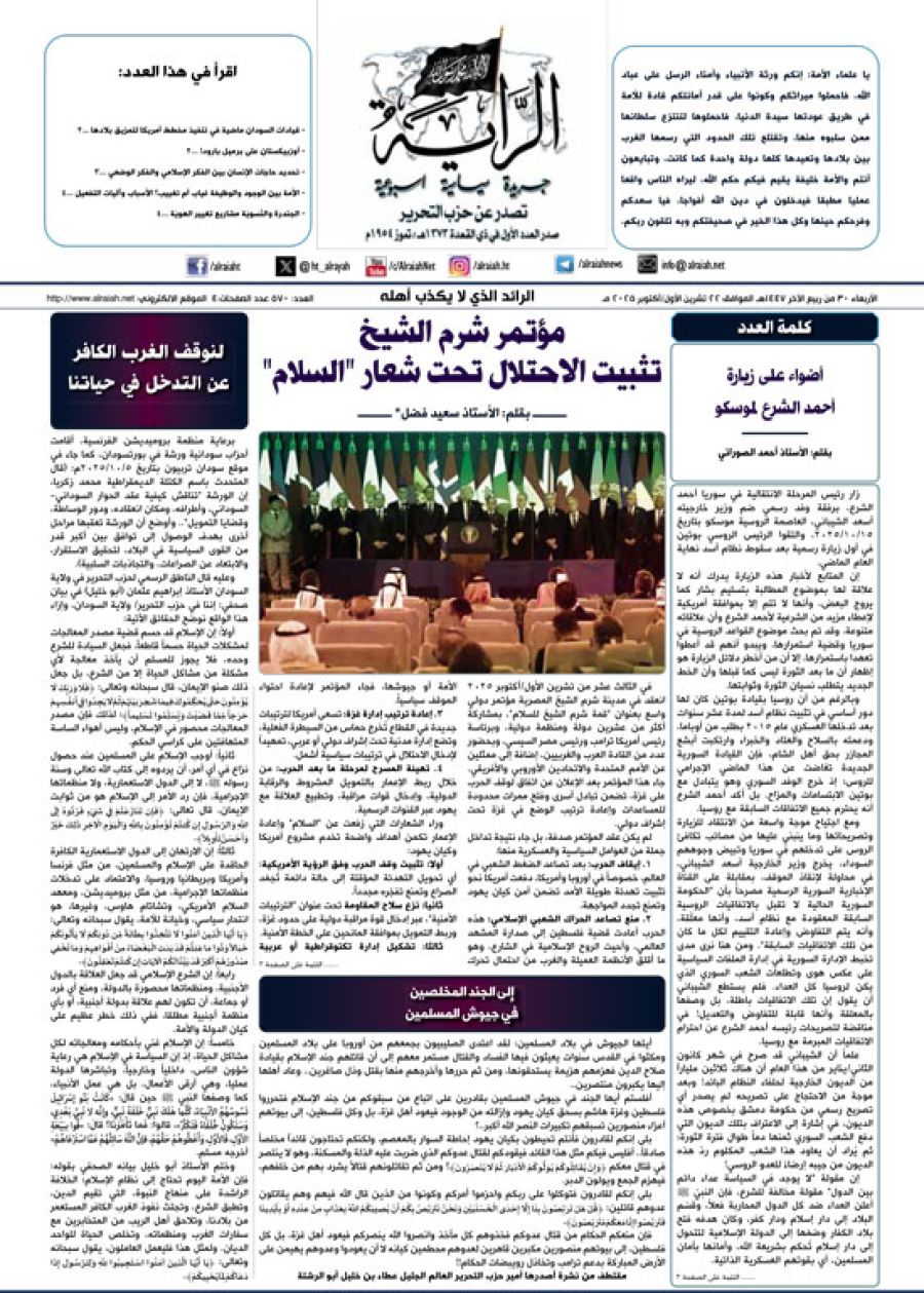 جريدة الراية العدد 570 الأربعاء 30 من ربيع الآخر 1447 هـ الموافق 22 تشرين الأول / أكتوبر 2025 م