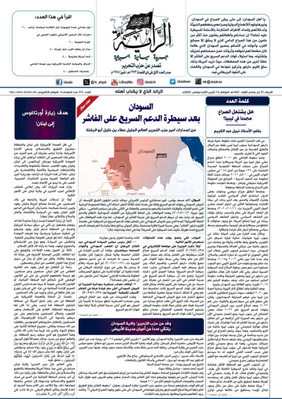 جريدة الراية العدد 573 الأربعاء 21 من جمادى الأولى 1447 هـ الموافق 12 تشرين الثاني / نوفمبر 2025 م