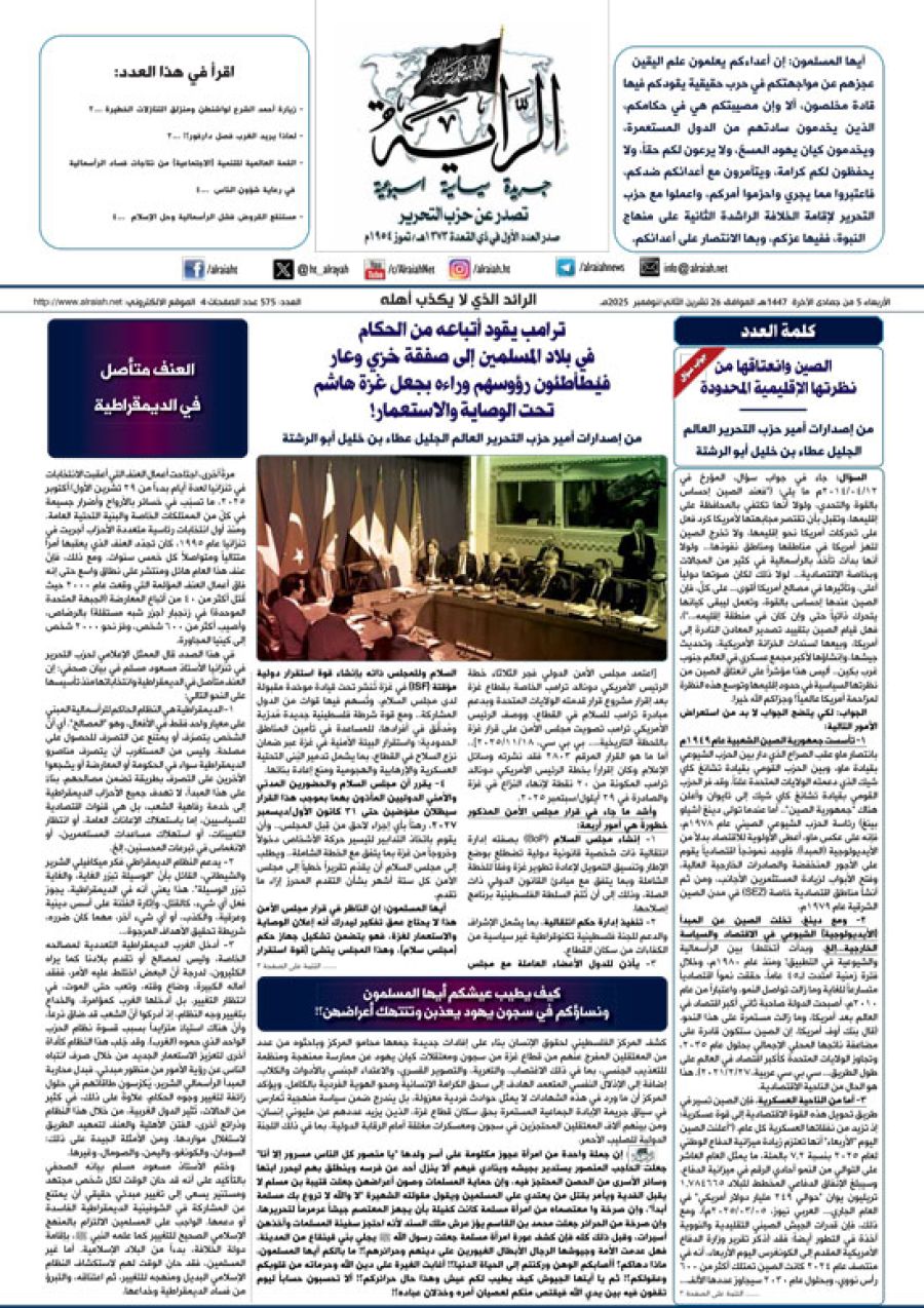جريدة الراية العدد 575 الأربعاء 5 من جمادى الآخرة 1447 هـ الموافق 26 تشرين الثاني / نوفمبر 2025 م